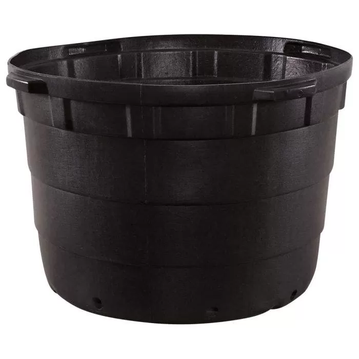 Haviland Nursery Containers are your dependable choice for durability and performance. With the industry’s heaviest blow molded containers, you can trust in their strength. The Scalloped Top Ring maintains the container shape, reducing trunk damage and preventing creases and bends. This minimizes the risk of side collapse during shipment and allows for higher product shipping densities, ultimately lowering shipping costs and reducing the need for protective packaging material. The Rounded Top Rim ensures less damage during transit, while the multiple handle grips make it easier to pick up and empty containers. The radiused stiffening rings further streamline the shipping preparation process. Additionally, the Stepped Tapered Body design allows for effortless removal of the trees with reduced labor and damage. The higher capacity drainage areas promote better root growth, lessen the chance of disease, and protect against product damage. With a top diameter of 30 inches, a height of 20 inches, a volume of 45 gallons (128.48 liters), and sold individually.