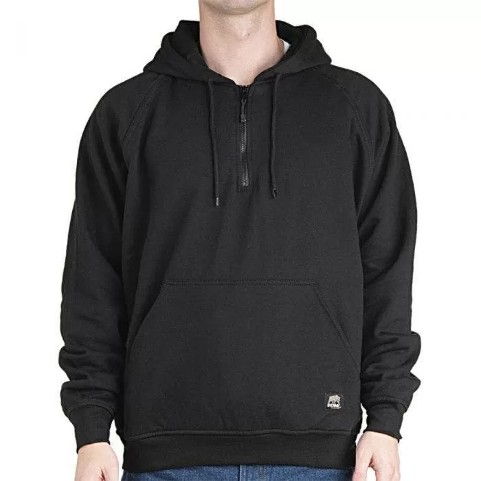 BERNE manufacturers its Mastic Thermal-Lined Hooded Quarter-Zips using a heavyweight cotton/polyester blended fleece. This size large black sweatshirt features a double-layered, 3-piece hood with a drawstring closure. The inside of the sweater has a 5-ounce thermal lining. BERNE also outfits Mastic Quarter-Zips with a large front pocket and heavyweight rib-knit storm cuffs.