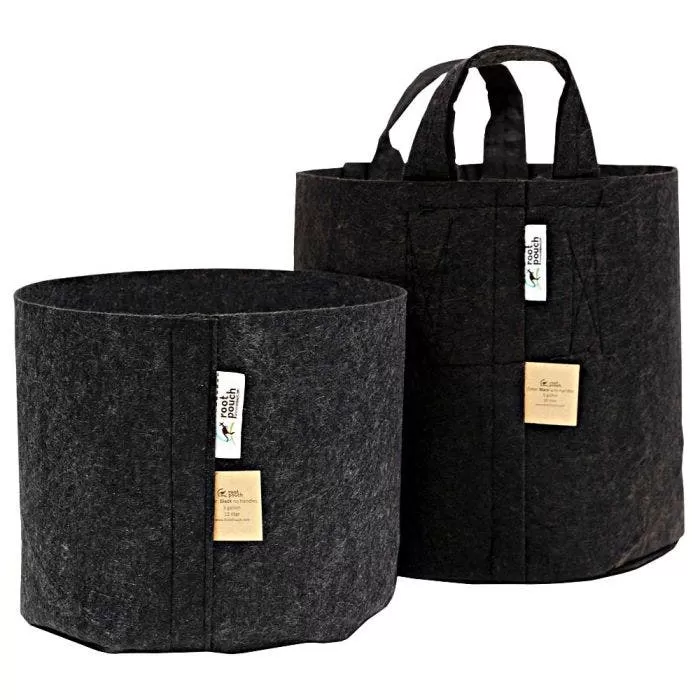 Do you want a nursery pot that is cheaper than the standard plastic pot – as low as 35 cents per pot? Do you worry about the environmental impact of those plastic pots? If you answered yes to either of these questions, Root Pouches are the perfect choice! Every year, millions of plastic pots find their way into landfills. The petroleum and other fossil fuels used to create these pots, along with their inability to break down, result in a negative impact on our environment. Root Pouch uses its award-winning technology to convert a mixture of recycled natural fibers and recycled bottles into their patented grow bags. These materials, otherwise destined for our landfills, see a second life as a lightweight, breathable geotextile. Root Pouch then uses this textile to create plant pots that degrade (break down) once you plant them in the ground. These fabric pots are wonderful for plants. They are breathable, so roots stay cool in summer and do not suffocate from over-watering. The fabric material allows for water permeation, so there is sufficient drainage without the need for holes in the pot. This product is perfect for in-ground as well as above ground growing. The uses are endless! Since they are made from flexible fabric, they do not chip or break like standard pots. You no longer have to clean up broken shards as you do with clay pots.