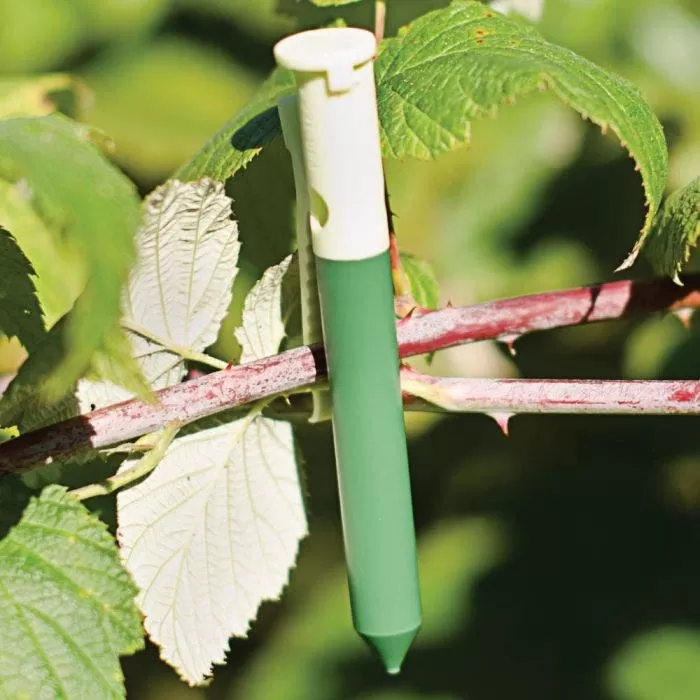 Use Garlic Clips to deter deer, rabbits, and other animals. Sulfur compounds in the garlic oil repel smell-sensitive animals from the area. They are also very easy to use. Just break the seal with the enclosed metal tool and clip sideways onto plants or fences. Use one dispenser every 4 to 6 feet. Placing the clips sideways prevents water from blocking the odor. You can also place them directly on the ground to protect low-growing plants.