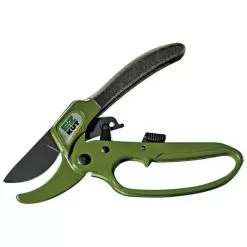 EZ KUT equips their Ratcheting Pruner with SK5 hardened carbon-steel blades. They finish these blades with a non-stick coating. These pruners feature a long-handled ergonomic grip with built-in shock absorbers. These shears cut through limbs up to 1-1/2 inches thick with relative ease.