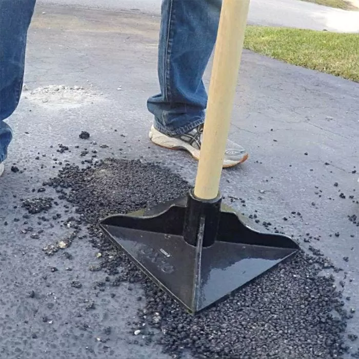 It works in all weather conditions, including cold and rainy days. You can even repair a pothole filled with water! EZ Street Cold Asphalt makes driveway and road repairs easier and faster. It requires no mixing or tack coating and is ready in 3 simple steps: First, sweep debris from the area. Next, fill the hole a few inches above your desired grade.