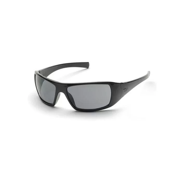 The Goliath Safety Glasses have a wrap-around, sunglass style that fits all facial sizes. They have a lightweight, contemporary frame that provides comfort for both work and recreational activities. The comfort fit rubber temples prevent the eyewear from slipping to provide maximum performance.