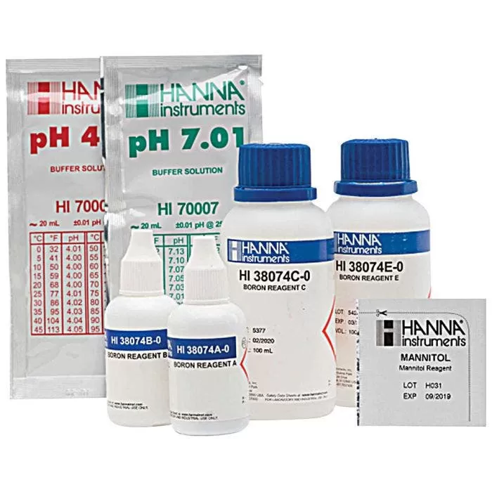 The Hanna Instruments Boron Test Kit provides readings from 0 to 5 milligrams per liter (mg/L) to 0.2 mg/L resolution.