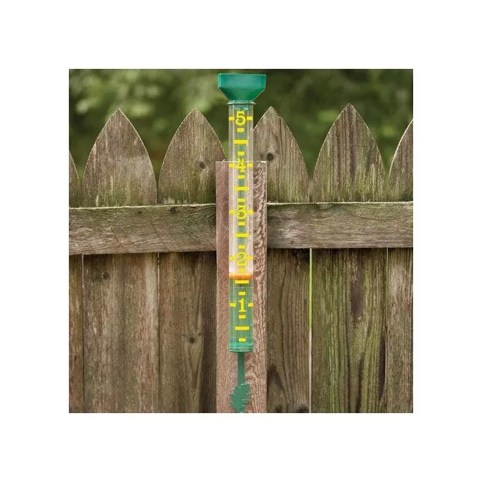 Oversized 20 inch tube measures rainfall from a slight sprinkle up to 5 inches. Unique funnel design calibrated so one inch of rain raises the float nearly 4 inches! Durable, high impact plastic
