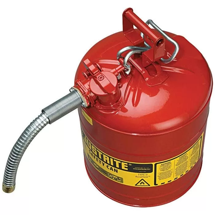 - Fully compliant Justrite Type II AccuFlow safety cans