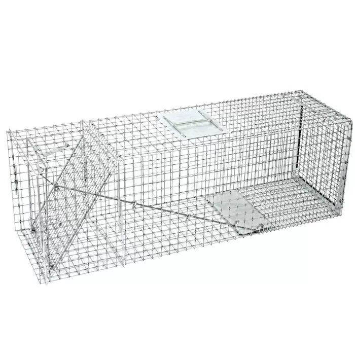 Trap those pesky pests alive, and return them to their natural habitat – away from your plants! Ideal for capturing rabbits, squirrels, foxes, raccoons, opossums, skunks and more. Heavy corrosion resistant galvanized wire – 1/2″ x 1″, or 1″ x 1″ mesh with welded steel collars. Large, protective safety plate located under handle. Other sizes also available, please call.36″ x 11″ x 12″ for large raccoons, woodchucks, foxes, etc. Slide release door.