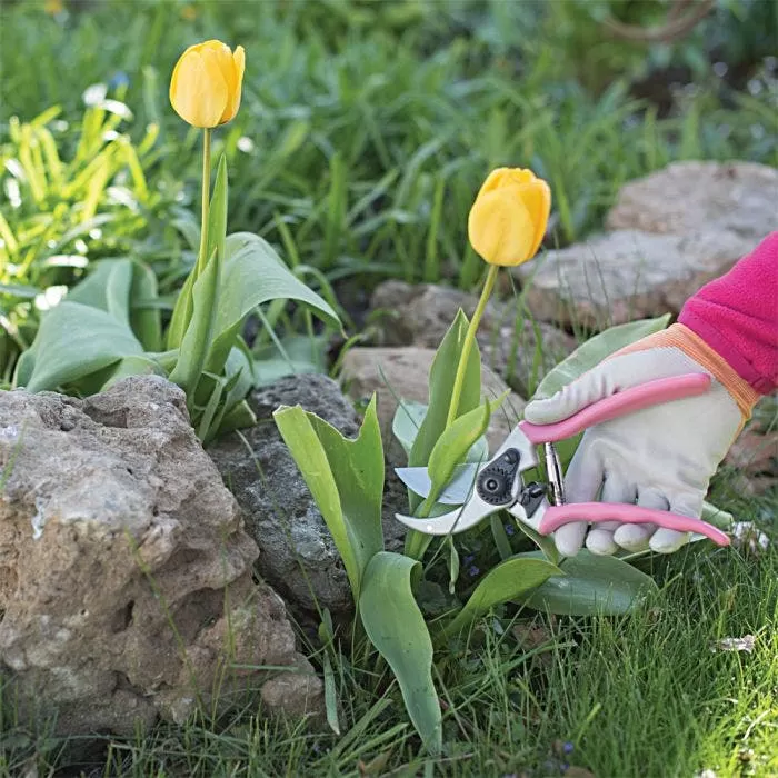 - Bright pink handles make tool easy to spot in the landscape; reduces tool loss. Vinyl grip reduces slipping