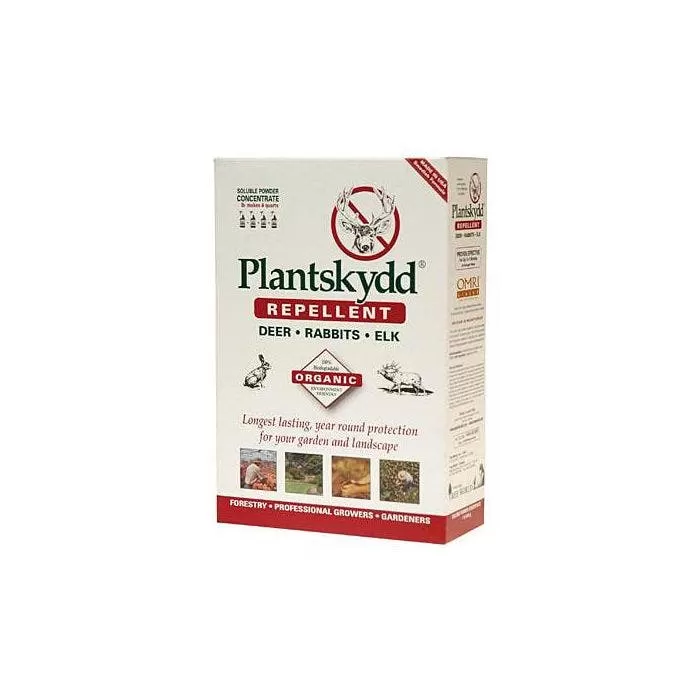 The active ingredient is dried blood meal, recognized by the EPA as environmentally safe. OMRI-listed as an organic solution, this was developed for commercial forest planting in Sweden, but is now produced in the USA! Rainfast in 24 hours. Repels deer, rabbits and elk. Plus, it acts as a foliar feed fertilizer on many plants.