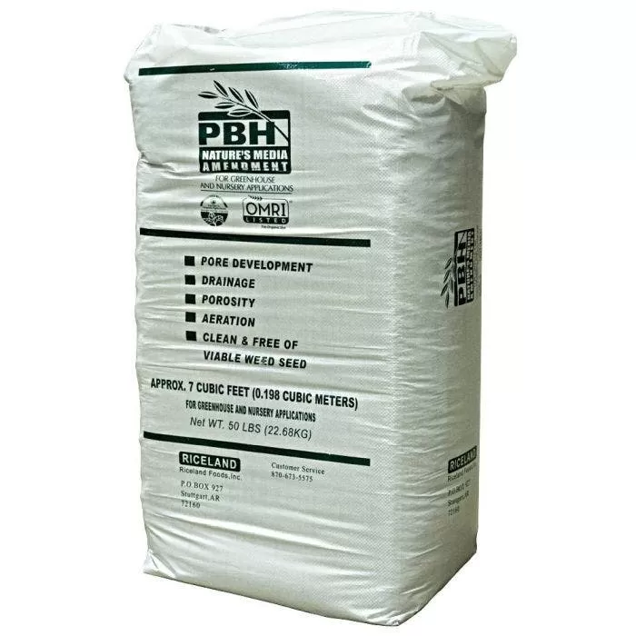 PBH Nature’s Media Amendment is a uniquely processed rice hull product from Riceland Foods, Inc. It has multiple uses in the greenhouse and nursery environment. For greenhouse production, it is the perfect replacement for perlite in growing mixes. Use PBH as a container topdress in nursery stock to prevent airborne weed seeds from reaching the growing mix. PBH Nature’s Media Amendment lowers freight costs, generates less waste, and minimizes storage and handling. It is a natural by-product of rice. It is a renewable resource and benefits greenhouse growers, nurserymen, consumers, and the environment. PBH is highly compressed when packaged. It is available in your choice of a 30 cubic-foot bag (90 cubic feet when uncompressed) or a 2.33 cubic-foot bag (7 cubic-feet when uncompressed). PBH is OMRI Listed® and WSDA-registered.