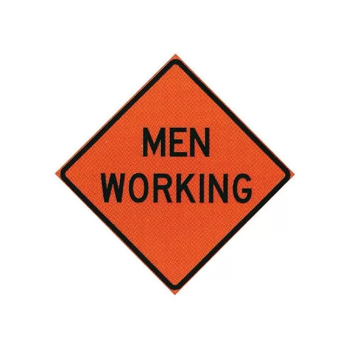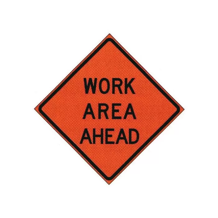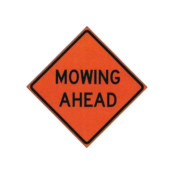 - 36″ diamond-shaped (rotated square) non-reflective orange woven polyester with bold black block letter print