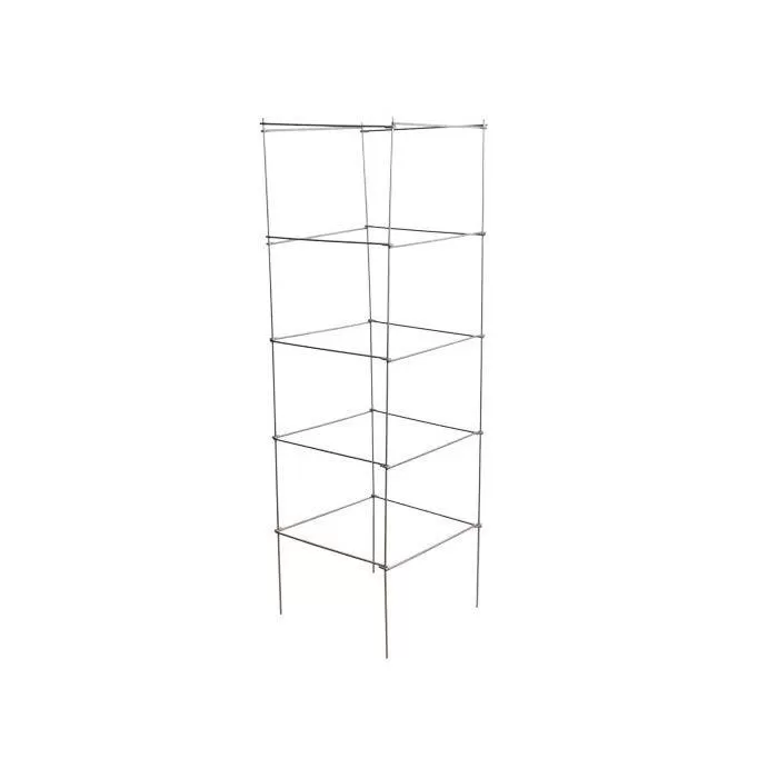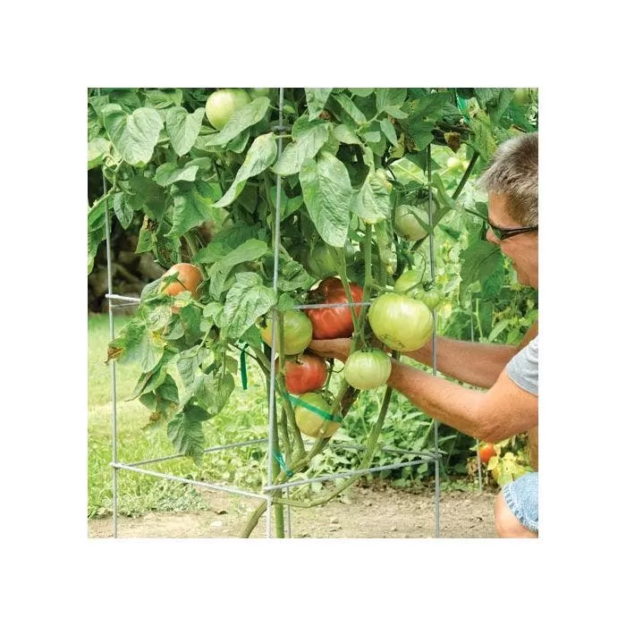 Super-Sturdy Professional Folding Tomato Cages feature a galvanized steel construction. This steel wiring measures nearly 1/4-inch in thickness. This square cage measures 60 inches in height and 18 inches in width. It fold flat for easy storage.