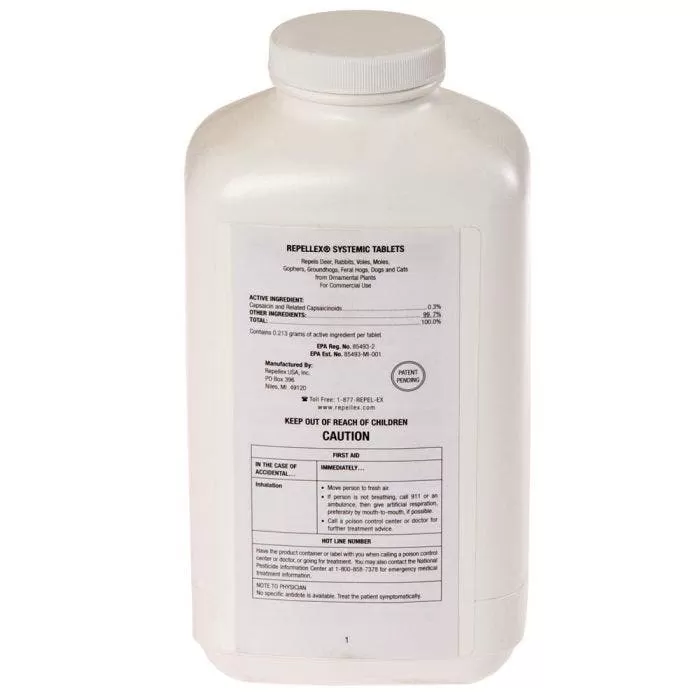 Repellex Systemic Animal Repellent is the only product on the market to systemically protect plants from damage caused by deer and other animals. Unlike other repellent products which are sprayed onto the plant surface, Repellex Systemic Animal Repellent is absorbed through the roots and protects plants from the inside out. Repellex Systemic Animal Repellent was developed for use on landscape plants and non-edible crops. The active ingredient is capsaicin, a concentrated extract of hot chili peppers. Since it can’t be washed off of the plant, it should not be applied to crops for consumption.