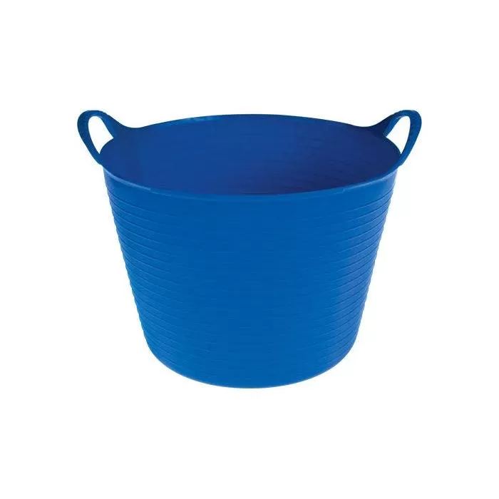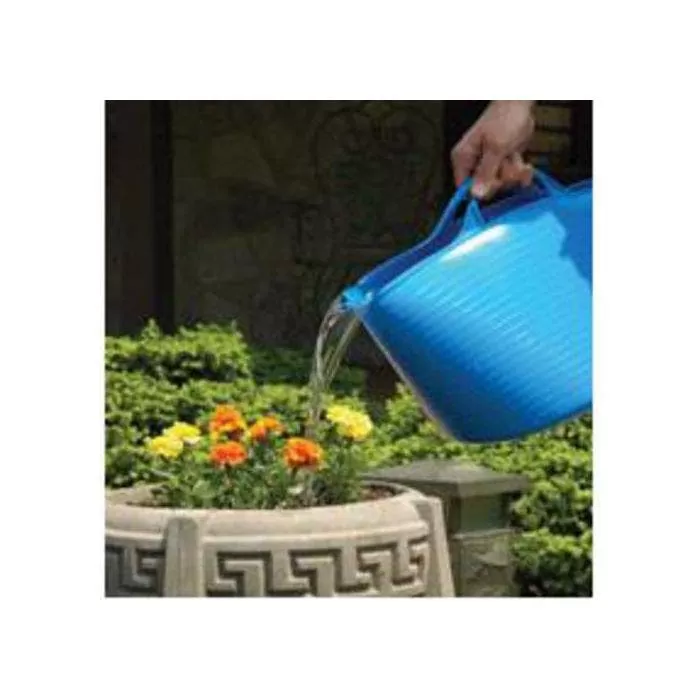 Tough enough to carry a load of bricks, yet pliable enough to pour liquids from. This flexibility also keeps splashing down to a minimum while hauling water. Handles can be pulled together to be carried with one hand.