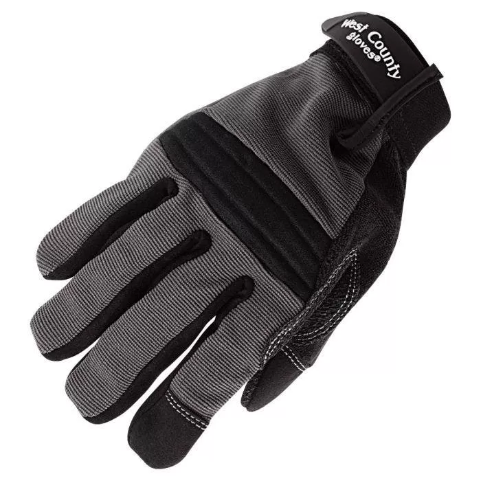 A breathable four-way spandex mesh on the top of the glove provides increased airflow, reducing sweat buildup. These gloves also feature a terry cloth brow wipe at the thumbs. Adjustable tabs make it easy to put the gloves on and to remove them. West County Landscaping Gloves are great for any job where abrasions or punctures are a risk. Their sturdy construction makes them extremely resistant to tearing yet still provides excellent dexterity.