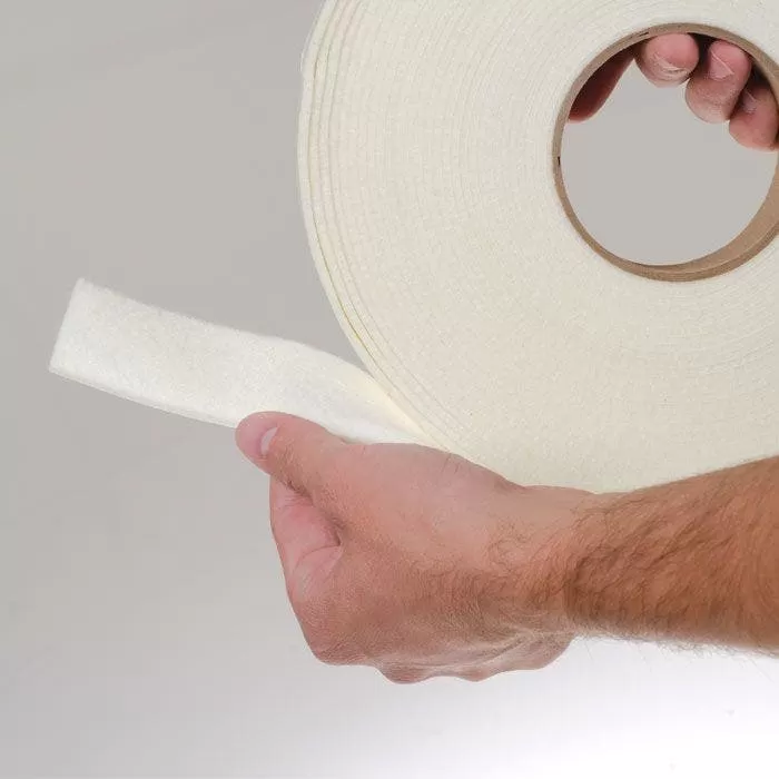 The White Felt Tape comes with an aggressive acrylic adhesive that can adhere to steel, aluminum, and wood frame work. It also holds up well to moisture, temperature, and UV light.
